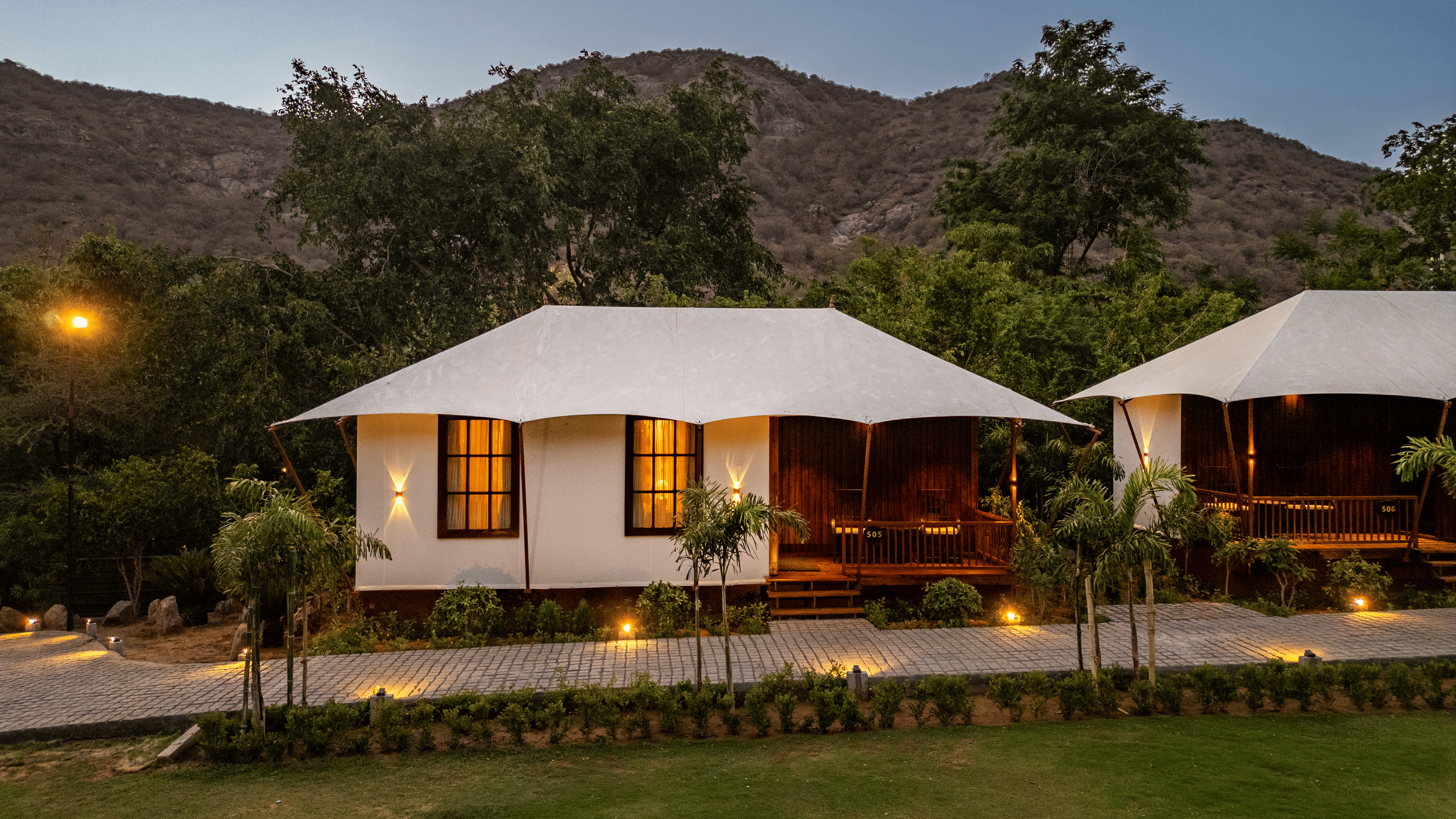 Enjoy the best glamping experience at our Luxury Tent rooms that measure 380 sq. ft. that come with private sit-out areas. The view of the Aravalli Hills from these tents in Pushkar is mesmerizing. With modern amenities like a 42-inch LCD screen, a minibar, and a cubical shower available to you, these tents assure a delightful stay. Enjoy your tent stay in Pushkar with us!