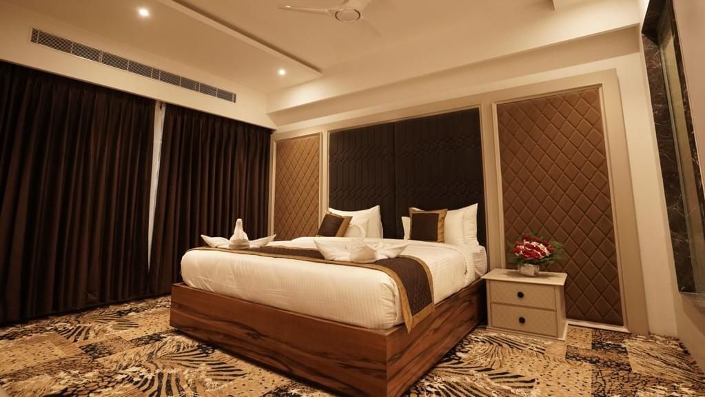 The Presidential Suite at Classic Sapphire Ananta has an area of about 845 sq. ft. with a maximum occupancy of 4 guests. We have 4 such Bundi hotel rooms which have king size beds with amenities like air-conditioning, complimentary bottled water, a minibar, a tea/coffee maker, a 43" TV, a wardrobe, and much more to ensure a comfortable stay. Our guests can also avail of 24-hour room service and laundry service.