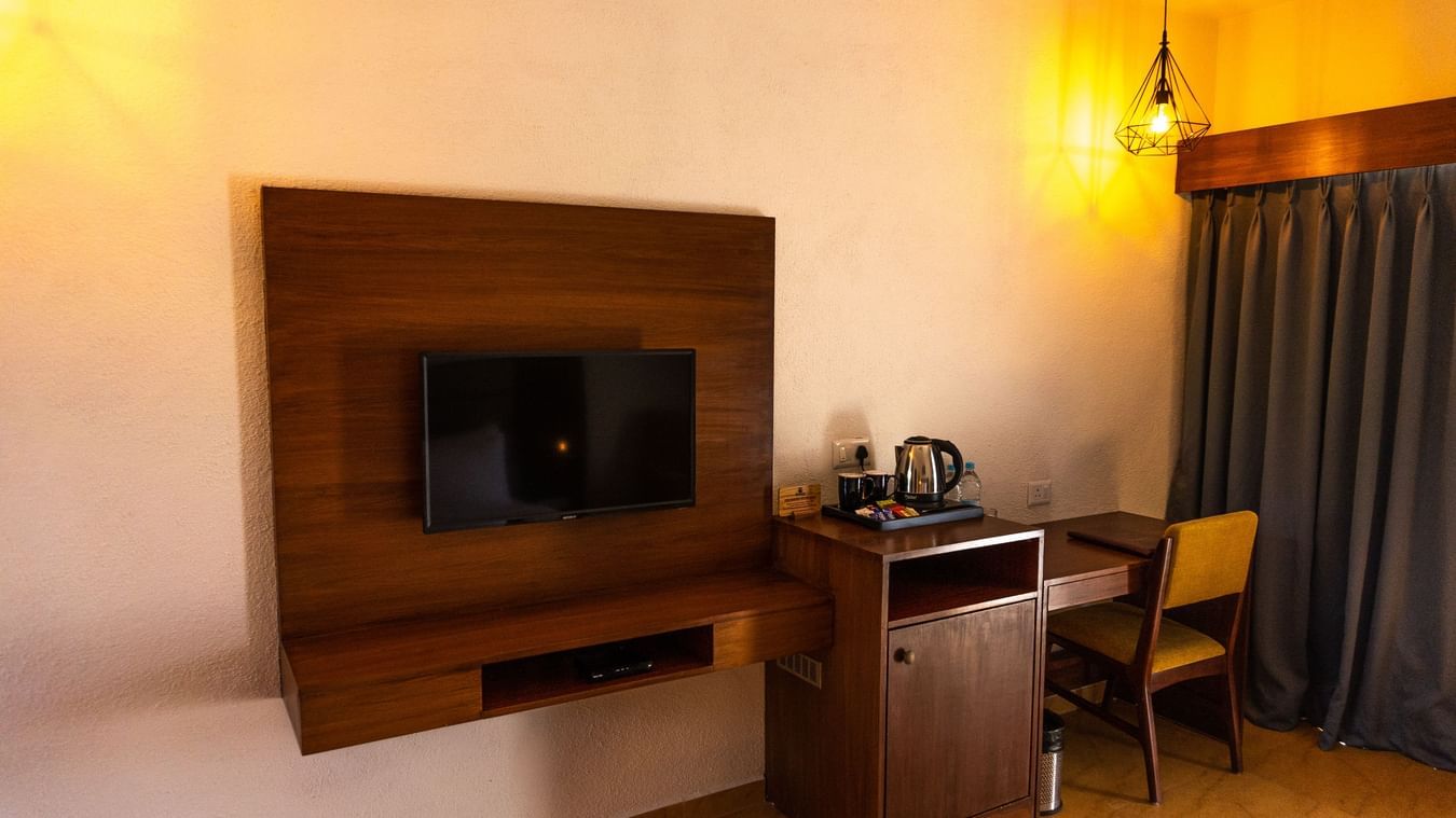 If you've been looking for the best place to stay in Gir forest, your search is over. Curated for a comfortable stay in Gir, the Classic Deluxe Rooms at Jagira Ananta Elite are spread across an area of 380 sq. ft. Beautifully designed with classic decor and chic furnishing, these rooms will surely elevate your living experience. We house 28 such rooms in Gir that are perfect for a family stay. The Classic Deluxe Rooms also come fitted with an array of premium facilities and services such as air-conditioning, high-speed internet access, a tea/coffee maker and 24-hour room service, among others.